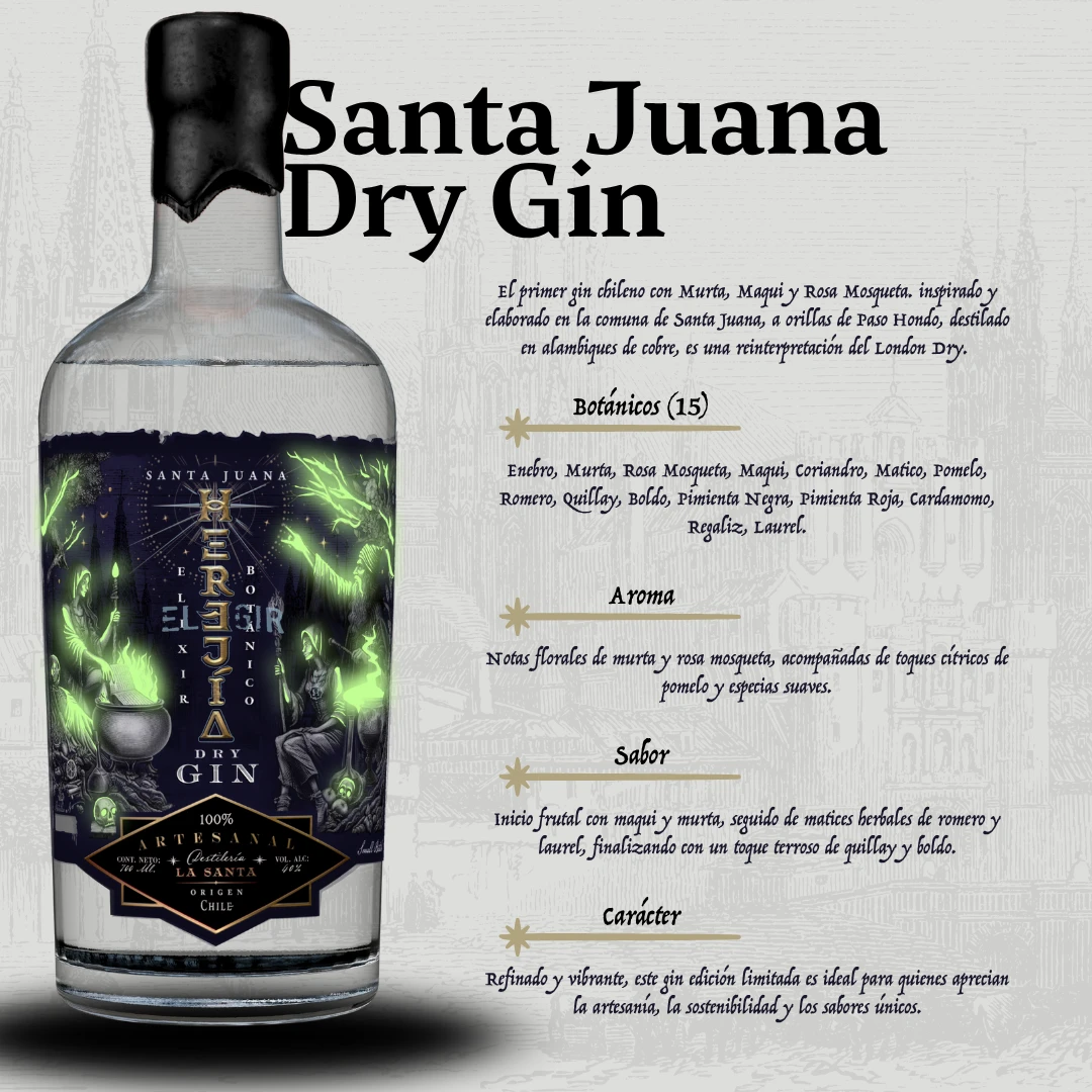 Este gin, donde la tradicional dominancia del enebro se equilibra con botánicos locales, es un testimonio de excelencia artesanal. Los ingredientes son recolectados a mano por agricultores locales, respetando tanto la tierra como el proceso. Santa Juana Dry Gin no solo desafía las expectativas, sino que establece un nuevo estándar de refinamiento en el mundo del gin, destacando por su sostenibilidad y autenticidad.
